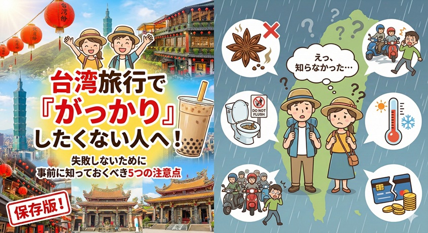 台湾旅行で「がっかり」したくない人へ!失敗しないために事前に知っておくべき5つの注意点「食べ歩きも楽しいし、親日で人も優しい!」と人気の台湾。日本から数時間で行ける手軽さもあり、海外旅行先として常にトップクラスの人気を誇ります。 しかし、いざ行…