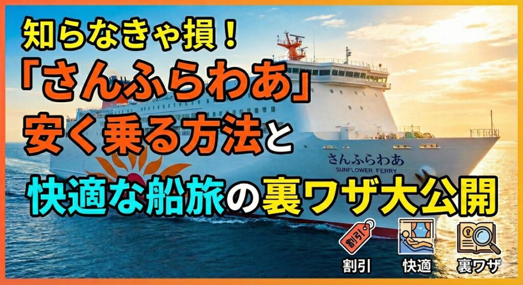知らなきゃ損!「さんふらわあ」安く乗る方法と快適な船旅の裏ワザ大公開非日常感あふれる船旅が楽しめる人気のフェリー「さんふらわあ」。 レストランでの食事や展望浴場でのリフレッシュなど、移動そのものが思い出になる魅力的なフェリーで… -