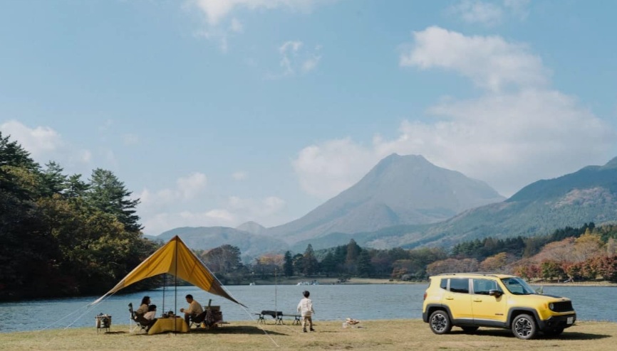 湖越しにそびえ立つ由布岳と鶴見岳の雄姿は、まるで一幅の絵画のよう。春には湖畔を彩る桜、冬には羽を休める白鳥の姿も見られ、カメラ好きにはたまらないフォトスポットです。キャンプ場も併設されているので、朝靄に包まれる湖面を眺めながらコーヒーを飲む、なんて贅沢な過ごし方もおすすめ。