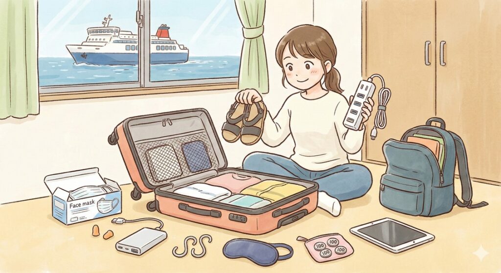 でも、いざパッキングを始めると「船の中って何が必要なんだろう?」「ホテルと同じ感覚で大丈夫かな?」と不安になりませんか?