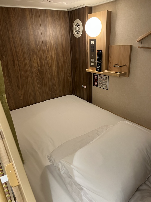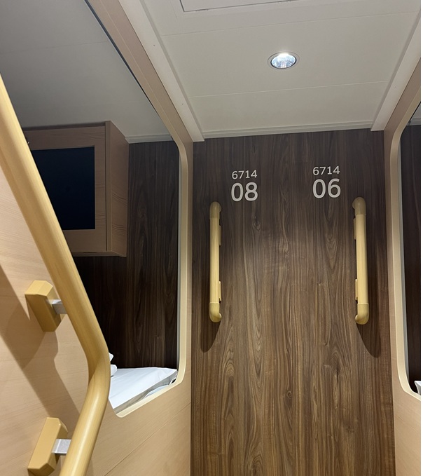 しかし、進化した「プライベートベッド」には、一人ひとつのコンセント(またはUSBポート)が枕元に完備されています。 寝ている間にスマホやカメラを充電できるので、翌日の観光に向けてバッテリーの心配をする必要がありません。また、手元を照らす読書灯(ライト)もついているため、消灯後にちょっとスマホを見たり、地図を確認したりするのも快適です。