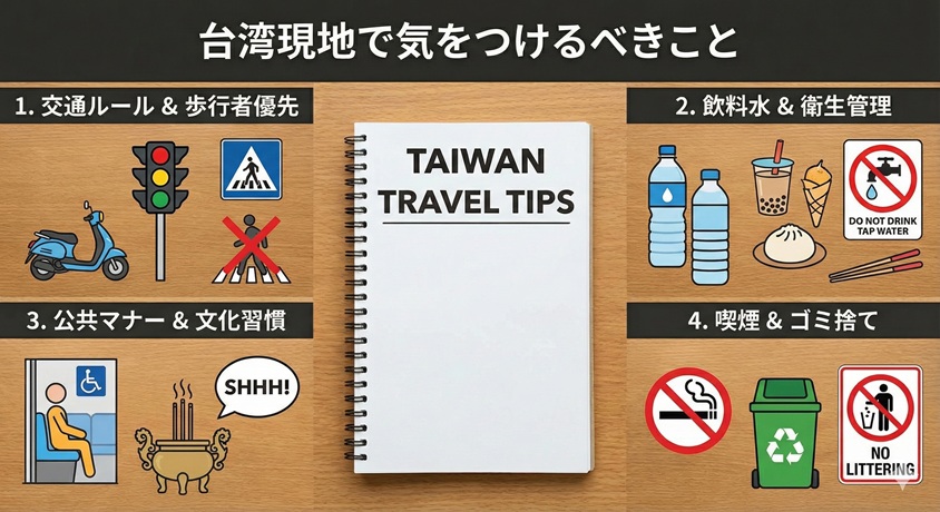 いよいよ台湾に到着。現地で楽しく過ごすために、日常生活のちょっとした「台湾ルール」と「注意点」を押さえておきましょう。